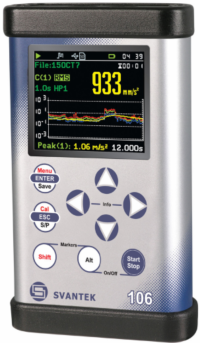The SV 106 is an all new six-channel human vibration exposure (HVE) meter and frequency analyzer. This rugged instrument meets the ISO 8041:2005 standard and it is an ideal choice for measurements according to ISO 2631-1, 2&5 and ISO 5349. The revolutionary, pocket-size instrument enables simultaneous measurements with two triaxial accelerometers (e.g. both-hands vibration or triaxial SEAT transmission measurements are possible) for ultimate flexibility and minimum measurement time for the user.