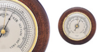 The Aneroid Barometer is a robust and simple to use, wall-mounting instrument for general purpose atmospheric pressure measurement. The instrument is of traditional design set on a dark wood base. The 95mm diameter dial has scales graduated in both millibars and inches of mercury, a settable pointer and an adjustment screw are also provided. It is an ideal instrument for observing weather related pressure trends.