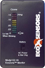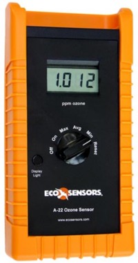The Eco Sensors Model A-21ZX portable ozone sensor provides a reliable and inexpensive way of checking generators, valves, piping and general environments for ozone leaks and for estimating ozone levels. It can be used as a permanent monitor indoors when concentrations average below .1 ppm. It may be used outdoors for ozone studies in moderate temperature conditions.