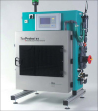 The ToxProtect64 is an automated monitoring system for the protection of a drinking water supply against accidental or malicious contamination due to harmful substances. The characteristics of such threats are a relatively high concentration of dangerous substances that occurs suddenly. This challenging task requires a number of important criteria to be met. Such a system MUST be sensitive to a wide range of toxins. The detection of