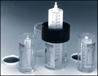 Flow is established by timing bubble and reading off flow from a special "time" chart attached to the flow meter barrel.